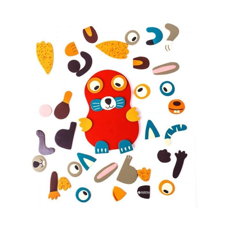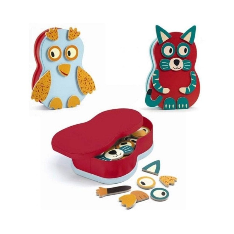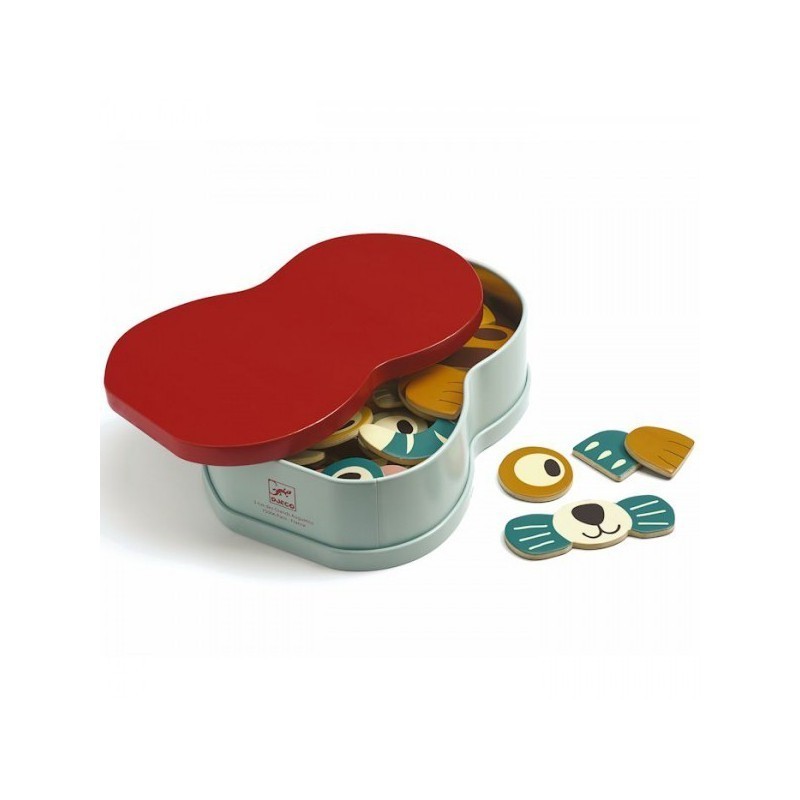 Caixa metàl·lica, que conté 41 imants de fusta relacionats amb els animals, porta ulls, boques, braços i cames, cues, ales, orelles, etc ... i d'aquesta manera el nen podrà crear diferents animals o la "bestiola "que ell vulgui.