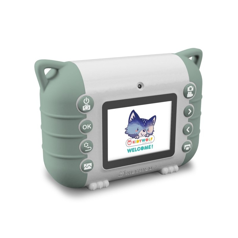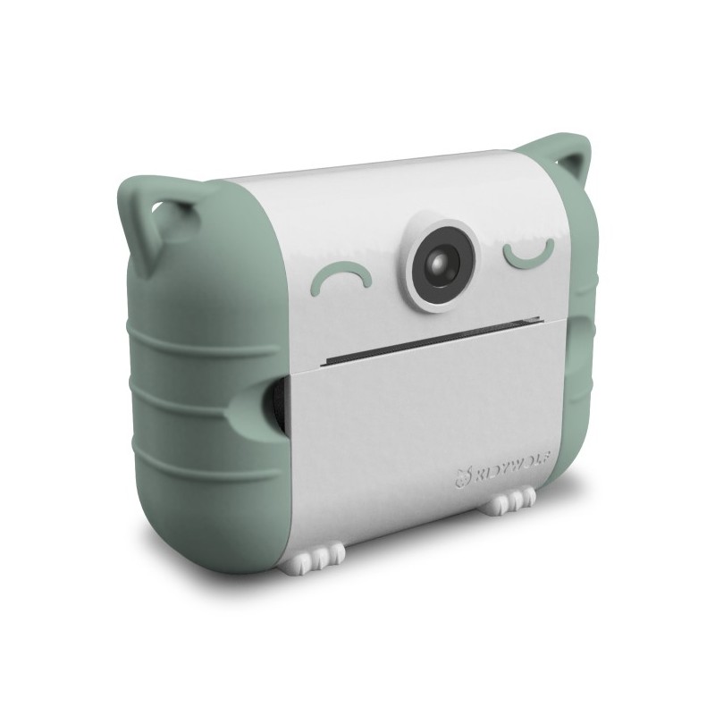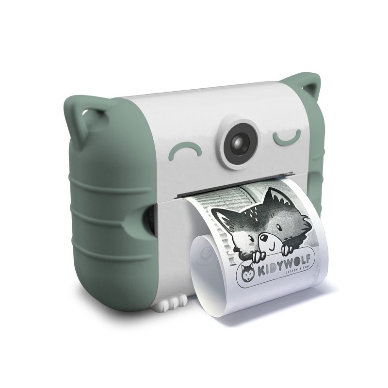KIDYPRINT es una cámara digital de Kidywolf con impresora incorporada que permite a los niños capturar y imprimir fotos al instante sin tinta, usando papel térmico. Las impresiones son en blanco y negro. Su tecnología de impresión térmica es ecológica, sin necesidad de tóner ni tinta. Además, la cámara incluye pegatinas para que los niños personalicen su cámara.